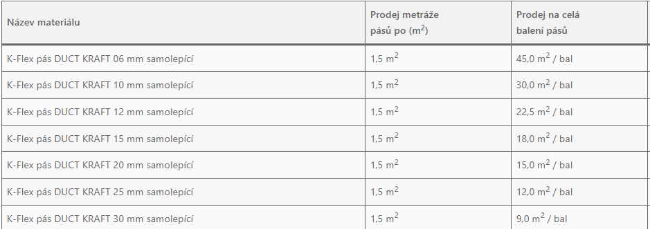 Délky v rolích izolace K-Flex DUCT KRAFT - objednat lze jakoukoliv délku Šířka role materiálu K-Flex H DUCT KRAFT je vždy 1,5 metr
