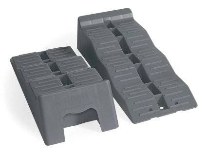 Vyrovnávací klíny Fiamma Level Up udrží karavan rovně během stání ve svazích či na nerovném povrchu.