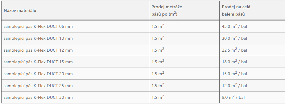 Délky v rolích izolace K-Flex DUCT - objednat lze jakoukoliv délku Šířka role materiálu K-Flex H DUCT je vždy 1,5 metr