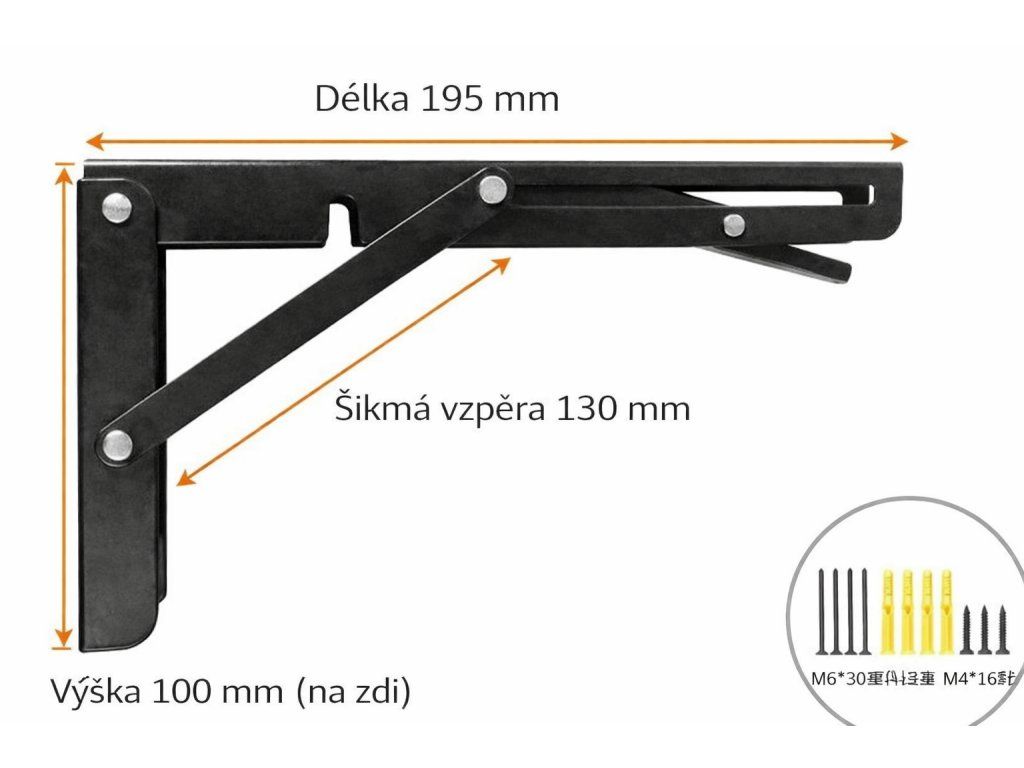 Sklopný držák police / stolku s aretací 195 mm