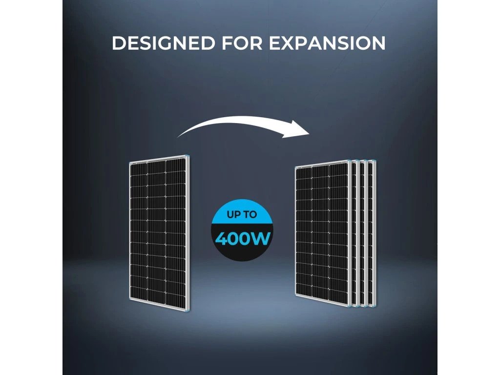 - Tento solární starter kit je ideální volbou pro majitele obytných vozů, karavanů nebo pro použití na balkoně