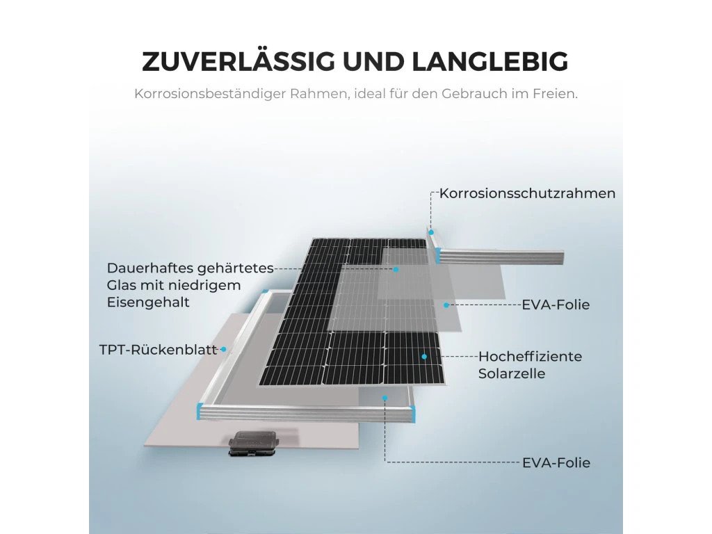 - Spolehlivý: EL-testované solární panely; zaručená absence přehřátí hotspotů