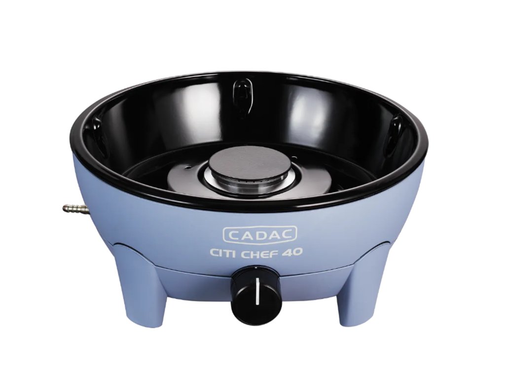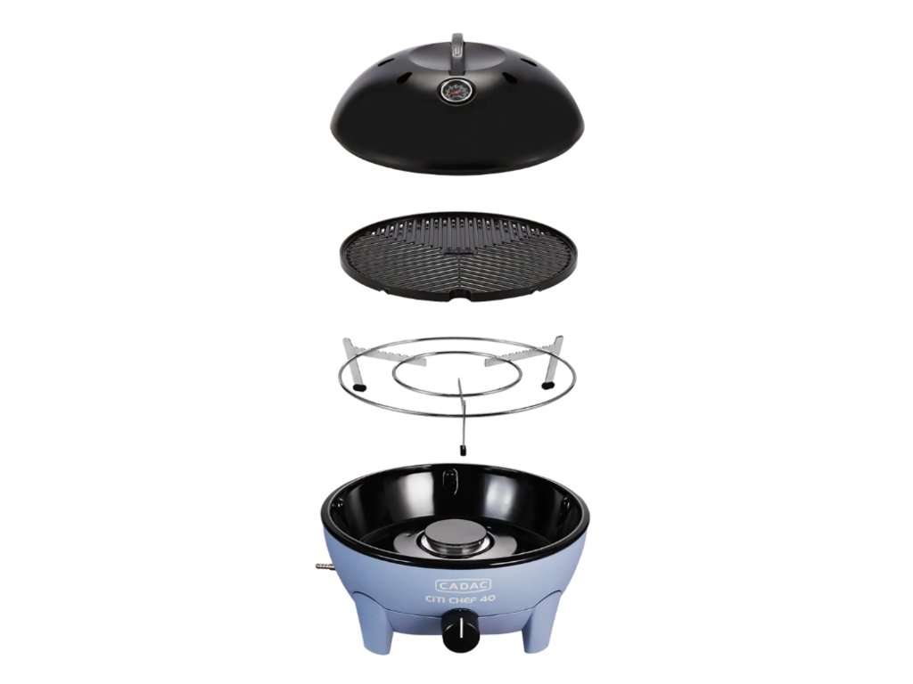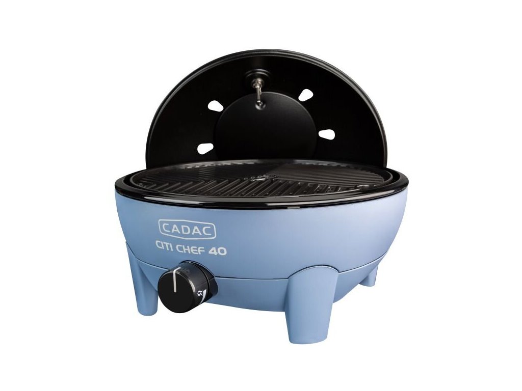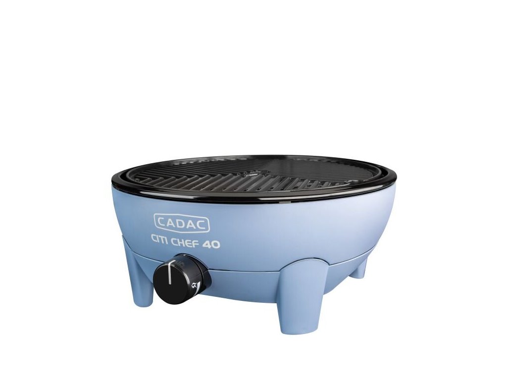 Stolní gril CADAC Citi Chef průměr 40 je velice robustní a kompaktní, takže lze pohodlně přenášet a používat na stole. Je vybaven hliníkovým grilovacím roštem s keramickou povrchovou úpravou GreenGrill a integrovaným deflektorem pro rovnoměrné šíření tepla. Odkapávací miska zapadá do vnějšího pláště hořáku a lze ji snadno vyjmout a vyčistit. Součástí balení je chromovaný podstavec pod hrnce, který umožňuje použití hrnců, paella pánve či pizza kamene.