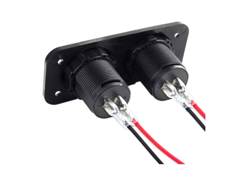 Výstup USB: 5V 2.1A max + 5V 1A, Rozměry: 106x44×55mm, včetně rámečku. Červené podsvícení displeje.