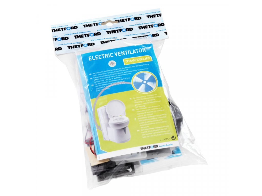 Elektrický ventilátor chemického WC Thetford automaticky filtruje zápach z odpadní kazety WC a vyvádí ho ven z vozidla. Zařízení disponuje tichostí a funkcí automatického zapnutí/vypnutí a ovládacím displejem. Filtry jsou vyměnitelné. Ventilátor je dostupný ve 2 variantách – pro WC Thetford C250 nebo C260.