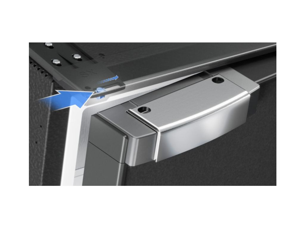 - unikátní montážní rámeček (není součástí dodávky, volitelné příslušenství, viz související produkty), který umožňuje zabudování chladničky se dveřmi zarovnanými s okolní plochou, nebo se dveřmi předsazenými o ca tloušťku dveří před okolní plochu
