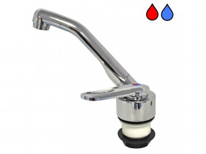 Standardní vodovodní baterie se sklopným ramenem, pro potřebu pouštění studené vody v kuchyni či koupelně jakéhokoliv karavanu. průměr montážní díry 17 mm délka závitu 27 mm...